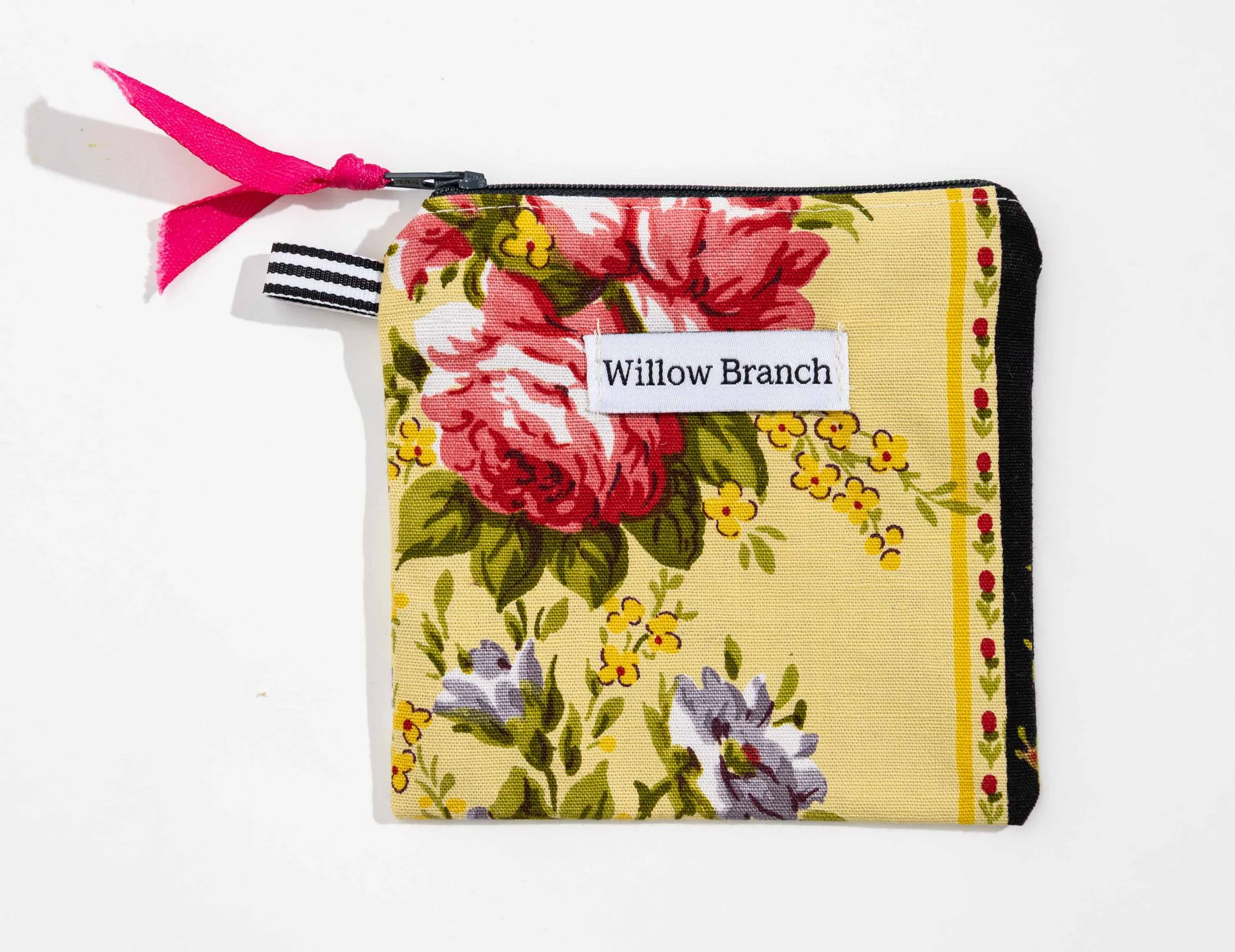 This handcrafted flat pouch is finding new life as a wallet or small pouch—saved this placemat from years in the linen cupboard and rescued from the landfill. It's a beautiful and practical way to bring purpose to your everyday rituals. Use it to carry personal items on the go or to tidy your purse so small items do not get lost in your purse.